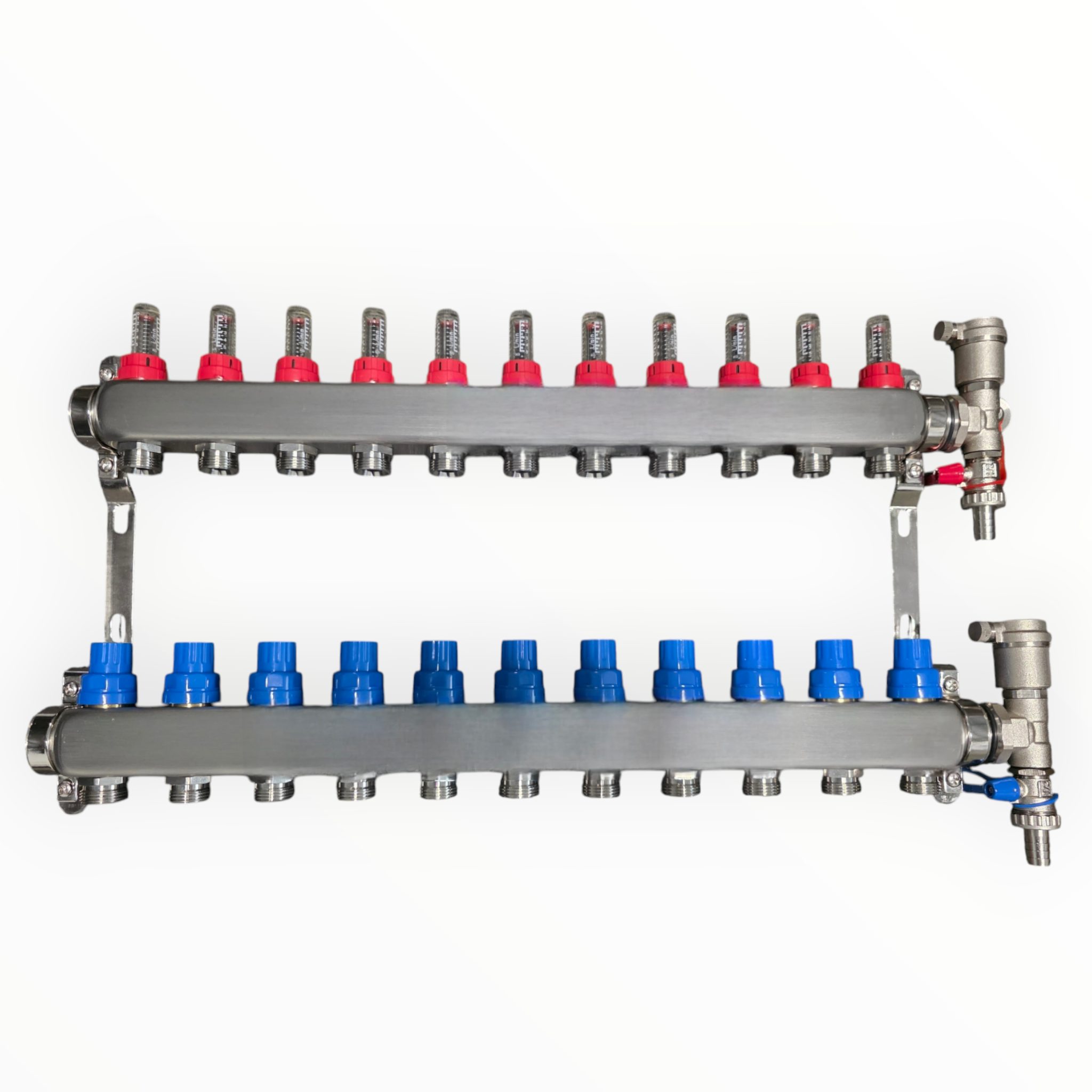 Hochleistungs-Verteilersystem mit integrierter automatischer Entlüftung. Konzipiert für maximale Effizienz in Radiatoren- und Fußbodenheizungen.