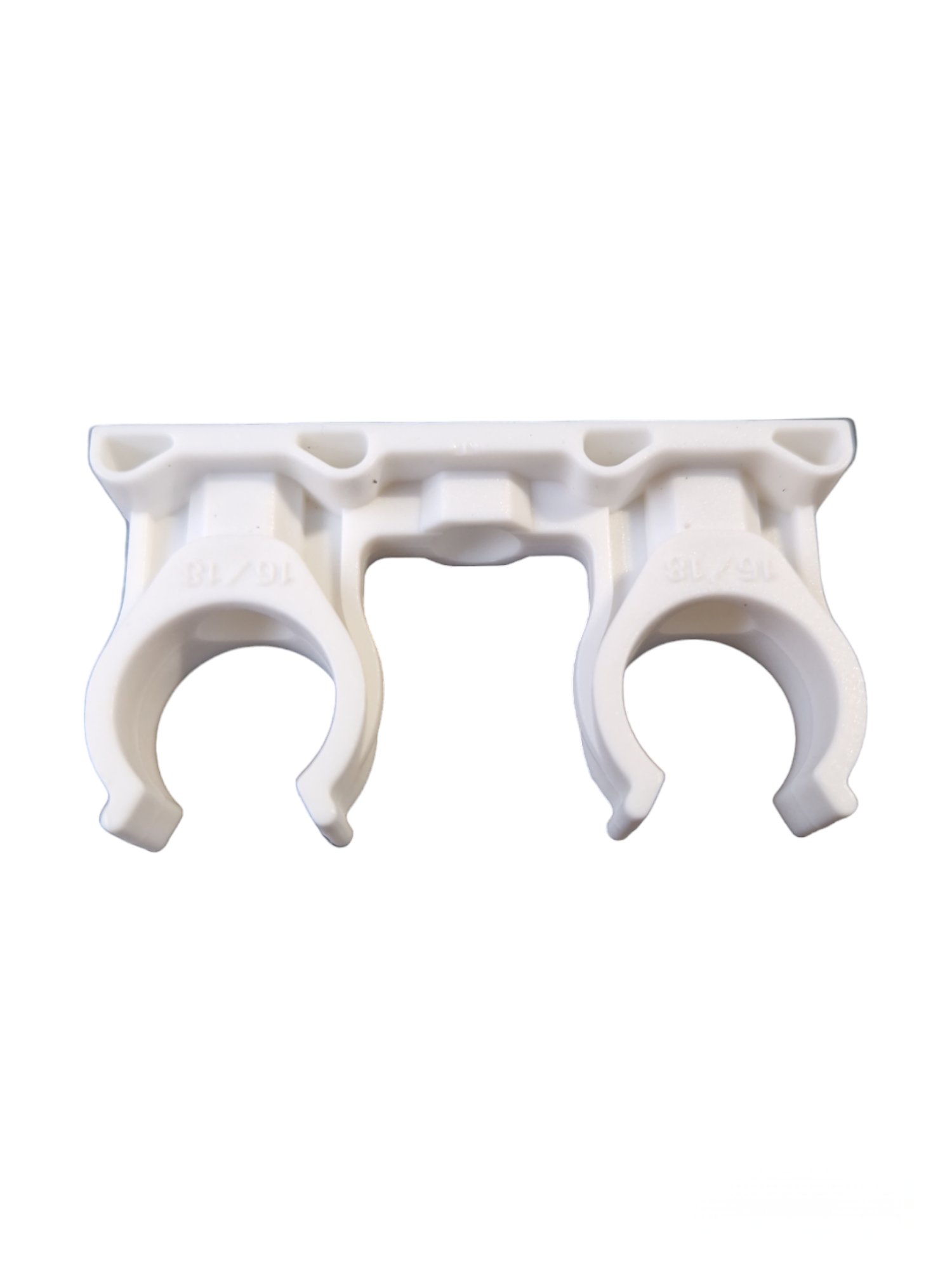 Doppel-Rohrclip für Mehrschichtverbundrohre, Aluminium-Verbundrohre und Kupferrohre (Größe 16-18 mm)