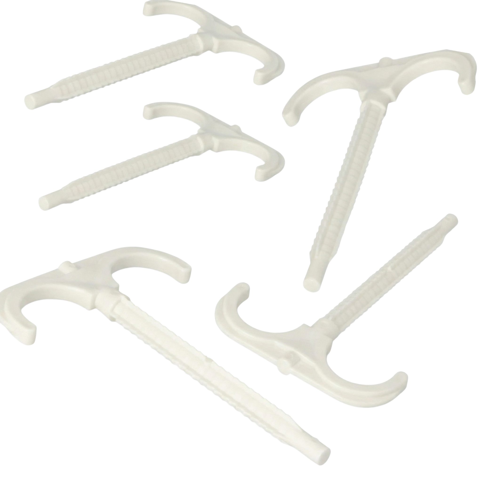 Der Doppel-Montagehaken (Twin) in der Standardlänge von 77 mm ist der vielseitige Standard für die paarweise Fixierung von Mehrschichtverbundrohren. Er bietet eine exzellente mechanische Verankerung bei der manuellen Montage auf gängigen Dämmplatten.